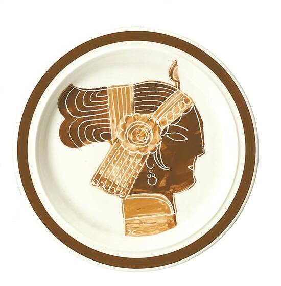 褐调民族女侧像挂盘,20世纪80年代 (谭畅作品) |