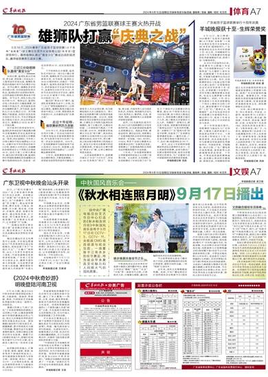 2024年9月15日/星期日/文娱体育部主编/责编 詹锡伟 / 美编 潘刚 / 校对 杜文杰