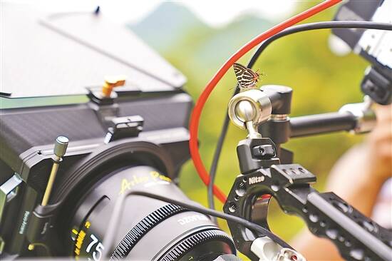 《雀尾》拍摄期间,山间的一只蝴蝶停留在摄影机上 |