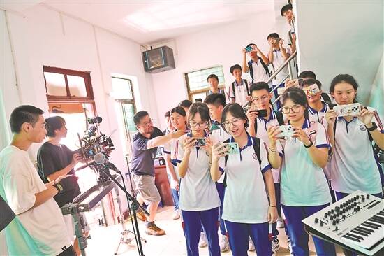 图/羊城晚报记者 钟振彬 宋金峪 文/羊城晚报记者 李丽 8月底至9月中,2024“向山海走去”青年导演创作扶持计划(以下简称山海计划)入选项目陆续开机。广州、深圳、佛山、清远、江门、湛江、揭阳、汕头、澳门……青年电影人奔赴岭南山海,展开多元创作。 在佛山三水区,青年导演闭善益找到了他故事里最重要的意象——承载少年成长的河。在他的作品《落水天,沉落去》里,高考失利的阿邓和他的落榜同学们组成的乐队,正是在这条河边,将乡间万物奏成了人生之歌。在广州花都的塱头古村,闭善益还让片中的摇滚乐队与当地的传统文化相碰撞,让这个发生在小镇的青春故事变得更为有趣和迷人。来自花都二中的一群学生们,成为了剧本里的一环,体验了一把拍电影当演员。 同样在佛山三水区,青年导演胡峤开机拍摄了今年山海计划项目中唯一的手机影片《三门》。在这个故事里,胡峤要在绿茵场上圆一个男人的足球梦,同时寻找如何从人生“不可能”中找到“可能”的秘诀。胡峤选择在举办佛山“西甲”的三水云秀山体育场取景,因为他认为这里是广东草根足球氛围最为浓厚之处。 在广东省清远市英德黄花镇开拍的《雀尾》,讲述了一个女孩的成长和疗愈故事。故事在雨季后的广东茶园小镇里发生,在青年导演戴晓璐和牧明的执导下,每一个镜头仿佛都散发着淡淡红茶香。 青年导演张艺川的剧组《炉底糍就是华夫饼》则奔赴了广东台山。故事里女主人公Linda与新识的小镇青年阿祖踏上了一段回忆之旅,“炉底糍”和“黄鳝饭”两种当地美食是旅途中的亮点。剧组为此前往台山第一家炉底糍店——桂姨炉底糍店实景拍摄,小吃店老板老许本色出演。 在澳门和深圳双城拍摄的《你好,马莉莉》中,导演张迪想用男孩吴子言的故事,呈现她记忆里南方的童年。在澳门,剧组在黑沙海滩看到了雨后彩虹;在深圳,他们又在一个杂货店老板的阁楼上挖到了充满年少记忆的“宝藏”。在深圳市盐田区的盐港中学,一群从没“触电”过的中学生加入剧组,度过了他们在镜头下的难忘一天。 在南方,山海故事仍在继续发生……