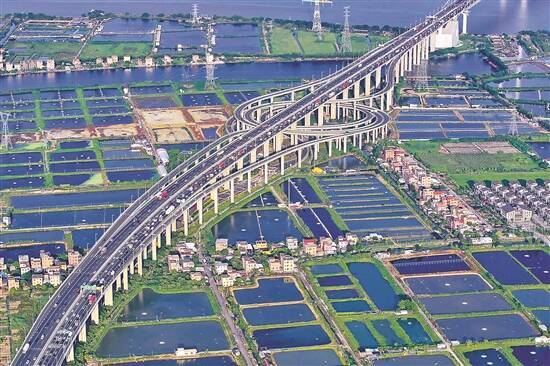 国庆黄金周最后一日,南沙大桥西往东上桥位车流量大 羊城晚报记者 钟振彬 摄