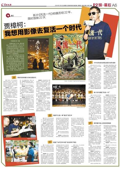 羊城晚报记者 李丽 拍摄历经22年,限时放映22天,即将在11月22日上映的贾樟柯新片《风流一代》到底有多特别?在近日的广州路演中,贾樟柯对这部其电影生涯中最耗时的作品进行了深度解