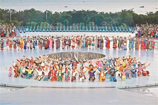 据新华社电 11月26日,第十二届全国少数民族传统体育运动会民族大联欢活动在海南三亚天涯海角景区举行。 本届运动会的民族大联欢活动分为欢迎仪式、游园环节和联欢环节。在天涯海角游览区的大门口,沿着幸福大道两侧,身穿黎族传统服饰的表演者们用“旗鼓相迎”的表演,欢迎参加游园环节的人们。 在天涯海角游览区,设有百花民舞场、国潮非遗街、奇遇百戏里、民俗社火集、逐浪音乐会5个主题展演区。 “我们利用三亚特有海景,安排近40组主题装置,算是延展出了一条绵长的海边‘民族风景线’。与海边特色景观、民族特色交互演艺相融合,结合了海南地方特色、民族特色、时尚潮流特色。”民族大联欢总制作人吴艳介绍。 随着天光渐晚,游园环节接近尾声,运动员们三三两两地朝着亚沙公园走去,准备参加联欢环节。 在亚沙公园,夕阳西下,晚霞如锦,阵阵海风送来清凉,歌舞《海天相连》、舞蹈《马铃儿摇响幸福歌》《扎西的蓝天梦》等文艺节目让人目不暇接;《美丽板鞋跑跑跑》《快乐彩绳跳跳跳》等互动游戏也赢得了运动员们的连声喝彩和热烈掌声。