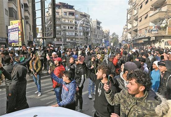 12月8日,当地民众聚集在叙利亚大马士革街头 新华社发 |