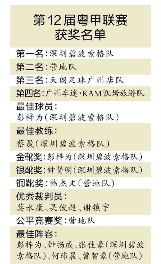 2024“酷草科技”第12届粤甲联赛近日在广州黄埔体育生态公园结束了本赛季的全部征程,深圳碧波索格队以4比2战胜营地队夺得冠军,从而获得升入2025年粤超联赛的资格。本届粤甲联赛历时将近三个月,为足球爱好者上演了32场精彩绝伦的五人足球赛。 总决赛可谓是本届联赛的精华浓缩,隆重的颁奖仪式变成了足球嘉年华。在率先进行的季军赛中,两队在常规赛就打得难分难解,此番对话更是火星撞地球,天朗足球广州店队的班底更加年轻和齐整,很快就进入状态,而广州车迷·KAM凯姆旅游队的技战术素养也很强,开场阶段并没有给对手太多机会。下半场,天朗足球广州店队展开了更加猛烈的进攻,年轻的优势逐渐显露,慢慢将比分拉开,最终天朗足球广州店队以4比0战胜对手获得季军。 冠军争夺战打得更加胶着,也将本赛季的粤甲联赛推向最高潮。双方阵中分别有香港港脚和广东省内最顶级的五人足球队员参赛。比赛开始后,率先进入状态的深圳碧波索格队很快就取得进球,在上半场逐渐掌控主动权,并取得两球的领先优势。下半场营地队逐渐进入状态,试图用积极的跑动和拼抢缩小分差,而深圳碧波索格队则在主教练的技战术布置下稳固防守,并没有给对手留下太多的漏洞,最终将两球的领先优势保持至完场,勇夺桂冠。 本届粤甲联赛共打进216球,产生了88名射手,平均分差仅为3.1个,激烈程度可见一斑。 周日的总决赛线上累计观赛人次超过55万,最多同时在线观战人次超过30万。中国足球国际裁判员、华南理工大学教授李英明在颁奖仪式表示,五人足球可以有效磨炼个人技术,由于比赛节奏快,对于裁判员执裁能力的提升,也是一次很好的锻炼机会,他希望粤超模式未来能够有机会推广到全国。 深圳碧波索格队的香港球员彭梓为创造了粤甲赛事的首个“大满贯”,他获得最佳球员、最佳射手、最佳阵容和联赛冠军四项殊荣。而赛事最佳阵容的5名球员平均年龄也大幅度降至23.2岁,最小年龄只有17岁。 让更多人参与足球运动并感受其中的快乐,是广东省五人足球协会指导粤超公司持续办赛的目的,这也与酷草科技企业倡导的“健康、快乐在路上”的理念不谋而合。 至此,2024年广东省五人足球赛季圆满结束,第13届粤超联赛将在2025年5月开幕。 羊城晚报记者 柴智 图/广东省五人足球协会