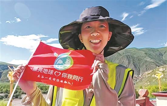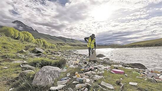 吴谷一在西藏的一条河流边捡拾垃圾 |