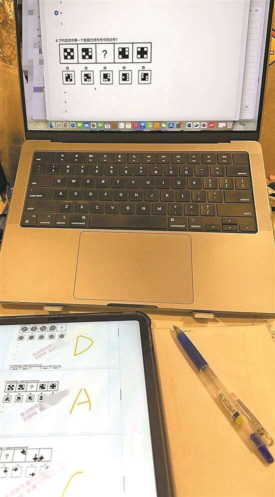 测评作答时,一毕业生拿出题库资料对答案 受访者供图 |