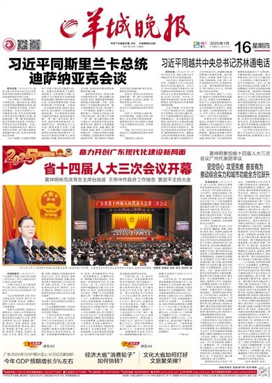 中共广东省委主管、主办 羊城晚报社出版 1957年10月1日创刊 2025年1月16日 甲辰年十二月十七 星期四 责编/徐雪亮 美编/郭子君