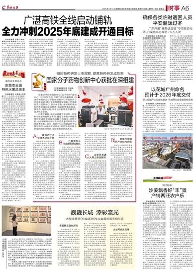 羊城晚报讯 记者严锦程、通讯员张志恒报道:1月16日,随着第一对500米长钢轨入槽就位,广湛高铁长轨铺设正式启动,标志着广湛高铁建设取得重大进展,为项目力争2025年年底建成通车奠定坚实基础。