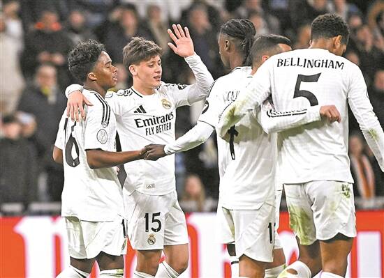 羊城晚报讯 记者刘毅报道:西班牙国王杯1/8决赛在北京时间1月17日凌晨上演进球大战,皇家马德里坐镇主场在2比0领先的情况下被塞尔塔逼平,经过加时赛才以5比2晋级。1月13日在西班牙超级杯决赛中,皇马以2比5惨败于巴塞罗那,国王杯这个比分像是皇马向四天前的自己致敬。 皇马主帅安切洛蒂上赛季带领球队成为欧冠和西甲双冠王,还顺利拿到欧洲超级杯和洲际杯冠军,这位传奇主帅在金球奖颁奖典礼和国际足联颁奖典礼都荣膺2024年度最佳主帅,力压带领西班牙夺得欧洲杯冠军的主帅德拉富恩特。可是作为新科年度最佳主帅,安切洛蒂在皇马竟然有了下课危机,因为本赛季两次对死敌巴塞罗那都输得太惨了,在西甲主场以0比4惨败,在西超杯决赛以2比5惨败。 安切洛蒂有自己的苦恼,皇马近几年引援主要集中在前场,主力后卫米利唐和卡瓦哈尔因伤告别本赛季,皇马在面对强队时的防守有点弱不禁风。再加上克罗斯退役、莫德里奇年龄偏大,皇马中场控制力也有所下降。西超杯惨败于巴萨之后,安切洛蒂考虑改变战术,在首发阵容不再同时派上前场“四巨头”维尼修斯、贝林厄姆、姆巴佩、罗德里戈,尤其在对强队的比赛需要寻求攻守平衡。 这场国王杯是皇马在西超杯惨败之后的第一场比赛,也是安切洛蒂改变战术的一次试验,罗德里戈和有伤在身的贝林厄姆都没有首发,维尼修斯和姆巴佩领衔皇马攻击线。姆巴佩状态明显好转,不仅进攻锐利,还能起到进攻支点作用。第37分钟,姆巴佩左路突入禁区小角度射门首开记录。第48分钟,姆巴佩回撤到中场斜传发动进攻,迪亚斯直传,维尼修斯为皇马扩大比分。 姆巴佩的重要作用还体现在他被换下之后,安切洛蒂以为胜局已定,在第79分钟用小将恩德里克换下姆巴佩,结果竟然连丢两球。也许是因为缺少了姆巴佩给对手的压制,西甲中游球队塞尔塔可以大胆投入进攻。第83分钟,班巴为塞尔塔扳回一球。伤停补时阶段,皇马中卫阿森西奥在禁区内对班巴犯规,巴萨旧将马科斯·阿隆索主罚点球把比分扳平。 皇马在2比0领先的情况下被迫打加时赛,好在恩德里克在加时赛攻入两球,巴尔韦德还攻入一记世界波,皇马最终以5比2淘汰对手。巴西前锋恩德里克低迷的时间太长,本赛季初段在西甲和欧冠分别取得进球,但此后基本被安切洛蒂弃用。恩德里克上次为皇马进球远在去年9月18日,本赛季在西甲总计只出场83分钟。 皇马在伯纳乌球场打了加时赛,相当于在90分钟比赛的基础上又送了主场球迷30分钟的进球表演。可是皇马球迷并不满意,把嘘声送给国际足坛年度最佳主帅安切洛蒂。赛后,安切洛蒂表示:“伯纳乌的嘘声对我们是一种警醒,鉴于对阵巴萨时发生的情况,这是可以理解的,但我们在那场比赛之后做出了很好的回应。”