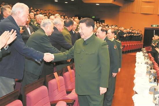 1月17日下午,中央军委慰问驻京部队老干部迎新春文艺演出在北京举行。中共中央总书记、国家主席、中央军委主席习近平观看演出,向在座的军队老同志,向全军离退休老干部,致以节日问候和新春祝福 新华社发 |