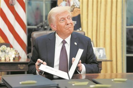 当地时间1月20日,美国总统特朗普就职后签署一系列文件 视觉中国供图 |