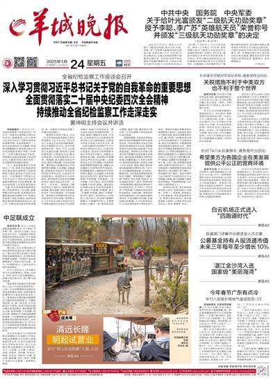 中共广东省委主管、主办 羊城晚报社出版 1957年10月1日创刊 2025年1月24日 甲辰年十二月廿五 星期五 责编/袁婧 美编/郭子君 校