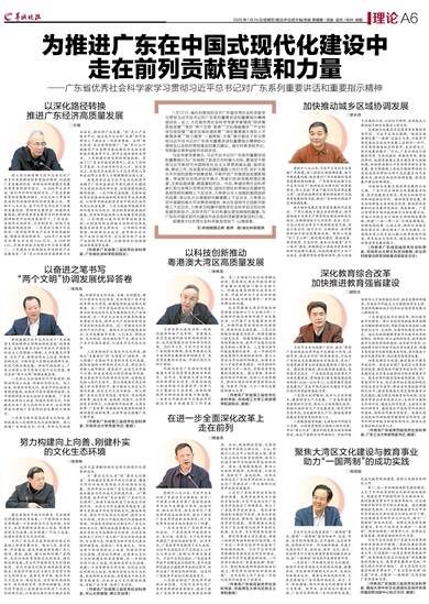 1月22日,省社科联组织召开广东省优秀社会科学家学习贯彻习近平总书记对广东系列重要讲话和重要指示精神座谈会。会上,8位省优秀社会科学专家学者围绕“经济高质量发展”“答好‘两个文明’答卷”“文化