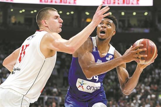 字母哥(右)和约基奇拼抢瞬间 图/视觉中国 |