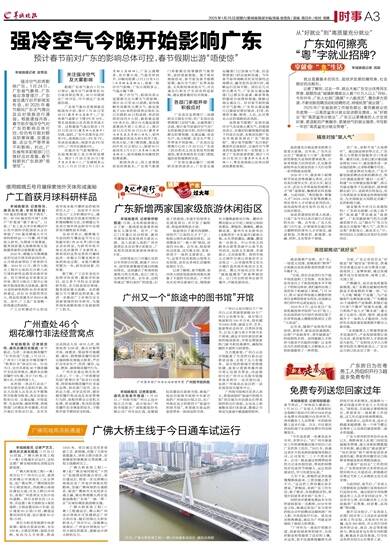 羊城晚报讯 记者严艺文、通讯员交通宣报道:1月25日10时起,广佛大桥系统工程(一期)主线通车试运行,这标志着广佛全域同城化进程迈向新高度。 广佛大桥系统工程(一期)项目位于广州市白云区