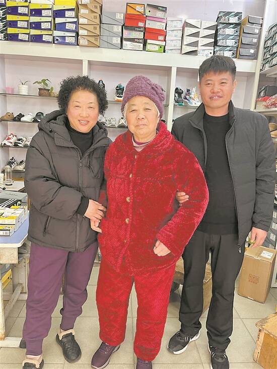 王刚和大姐(左一)、母亲(左二)的合影 |