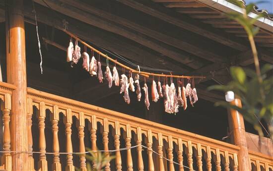 农历新年的脚步越来越近了,云南省红河州蒙自的一户彝族农家楼上,正在晾晒腊肉,让人隐约可以闻到浓浓的年味。