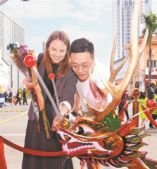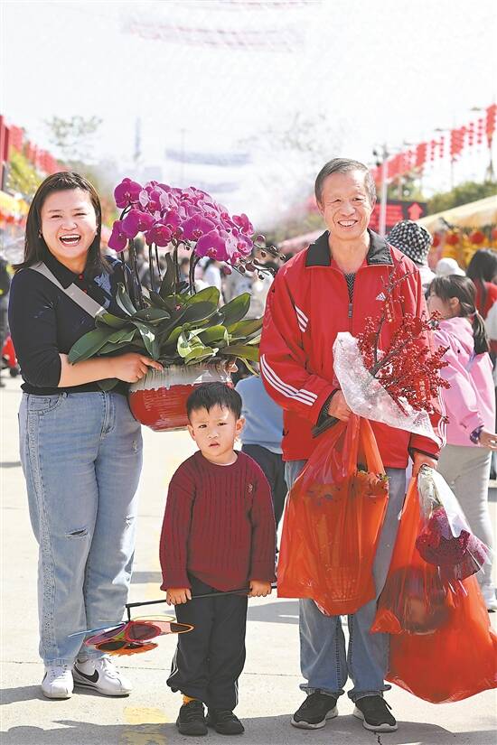 文/羊城晚报记者 曾育文 林桂炎 图/羊城晚报记者 林桂炎 曾育文 陈秋明 周巍 “行花街,过大年”,逛花市是广府地区过春节的一大传统。每年除夕的前几天,广州各区的花市都会如约而至,为市民和来自世界各地的游客提供“新春好去处”。 1月23日,2025年番禺区迎春花市在南村万博中心商业街热闹举办。作为本年度番禺花市的主会场,这里不仅保留了行花街、买年货、看表演的传统,还新增了非遗体验、巡游表演、互动游戏等一系列集市活动,为广大市民奉上一场集“行+演+玩+赏”于一体的“欢乐嘉年华”。 安徽的赵阿姨,跟着在广州工作的儿子来广州已经8年了,现住番禺,往年会跟着春运大军长途跋涉返回安徽过年,今年决定留在广州过年。她喊上同小区要好的9位“小姐妹”一起逛花市,买花过年。赵阿姨如数家珍般展示着手中刚从花市购买的五颜六色的花,笑声清脆响亮。赵阿姨说自己很喜欢广州,这个时间安徽已经冰天雪地,但广州依然温暖如春,是个“花花世界”,很美。 来自番禺区洛浦中学的麦老师,第二年作为“花仙子”身份报名参与番禺花市志愿活动,为来自四面八方的游客介绍花市特色。在讲解的过程中既能了解更多的广府文化,也能很好地将广府文化传播出去。麦老师还带着自己9岁和6岁的儿子一起参与到花市的公益义卖活动中,将义卖所得善款捐赠给需要的人。这样既能提高孩子的沟通能力,又能培养孩子的向善之心。 来自俄罗斯的热尼娅,全程带着好奇而惊讶的眼神在花市人群中钻进钻出,刚到广州的她对广州的一切都觉得陌生又新奇。热尼娅与黑龙江的丈夫赵云飞于8年前在俄罗斯上学期间相识相知相爱,而后在俄罗斯结婚生子。前几年疫情,将他们阻隔在俄罗斯。疫情防控平稳后,他们不远万里从俄罗斯回到广州定居生活。日常经营自媒体,在网上销售俄罗斯特色产品。热尼娅用不大熟练的中文说:“广州天气很好,我特别喜欢广州,第二个喜欢俄罗斯。”丈夫赵云飞在边上补充翻译着“她的意思是比起俄罗斯她更喜欢广州”。 在天河区迎春花市的工艺品档口,读5年级的黄可心和爸爸一起卖工艺品。远远可见她站在红色的凳子上,手中提线舞动着醒狮,吸引了不少市民观看。 作为在广东出生的河南人,小小年纪已是花市“老手”,以前跟着爸爸在佛山花市也开过档口。她说舞狮代表招财进宝,还能辟邪,这是第一次来天河花市,感觉这里人流很多,气氛也更加火热。 1月25日,越秀区、天河区花市已盛大开市,荔湾花市也将在26日正式开市,浓浓的年味逐步推向高潮。