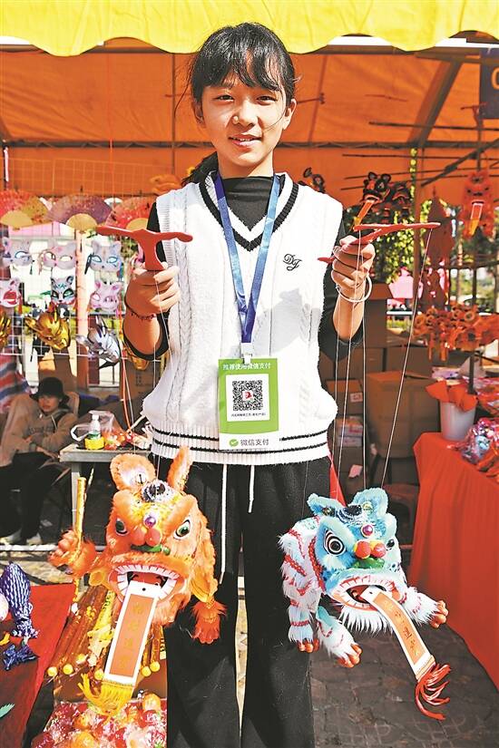 天河区迎春花市的工艺品档口,读五年级的黄可心和爸爸一起卖工艺品 |