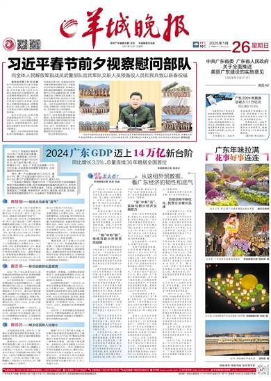 中共广东省委主管、主办 羊城晚报社出版 1957年10月1日创刊 10℃-17℃ 2025年1月26日 甲辰年十二月廿七 星期日 责编/林圳 美编/刘苗 校对/