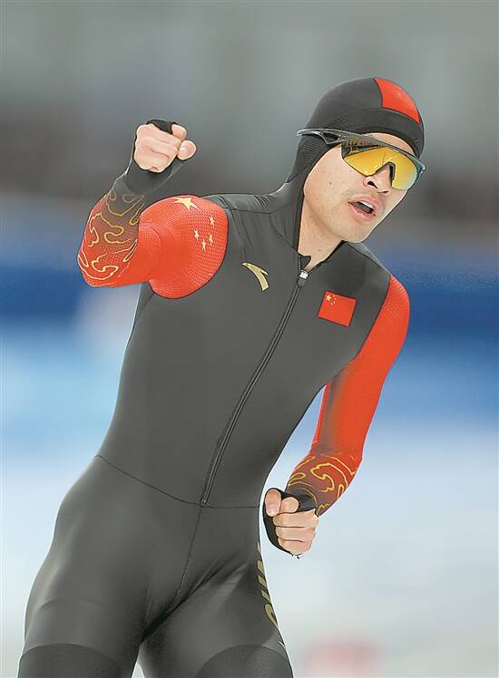 2月8日,宁忠岩在比赛后庆祝 |