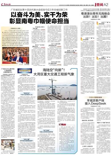 羊城晚报记者 艾修煜 2025年2月12日农历正月十五元宵佳节,“月满City·Ai聚湾区——2025粤港澳台青年元宵晚会”在广东移动频道、大湾区卫视、澳门有线电视以及海内外100多个网