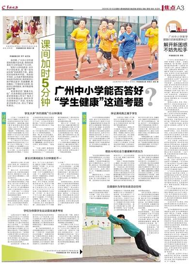 羊城晚报记者 何宁 崔文灿 新学期,广州中小学生感受到的最大变化是:课间由原来的10分钟变成了15分钟。 短短5分钟的改变,对于不少学校来说,是“牵一发而动全身”的系统性工程。