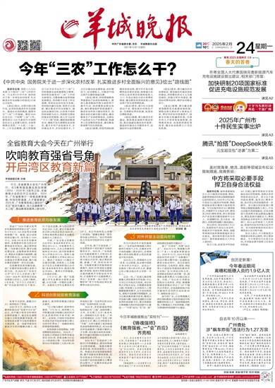 中共广东省委主管、主办 羊城晚报社出版 1957年10月1日创刊 2025年2月24日 乙巳年正月廿七 星期一 责编/袁婧 美编/郭子君