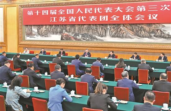 新华社北京3月5日电 中共中央总书记、国家主席、中央军委主席习近平5日下午在参加他所在的十四届全国人大三次会议江苏代表团审议时强调,圆满实现“十四五”发展目标,经济大省要挑大梁。江苏要把握好挑大梁的着力点,在推动科技创新和产业创新融合上打头阵,在推进深层次改革和高水平开放上勇争先,在落实国家重大发展战略上走在前,在促进全体人民共同富裕上作示范。 江苏代表团审议认真,气氛活跃。赵建军、徐光辉、张俊杰、李肖娜、缪汉根、柯军等6位代表分别就加快绿色低碳转型发展、打造产业科技创新中心、推动转化医学建设、建设和美社区、推动传统产业发展、保护传承传统戏曲等发言。 在听取大家发言后,习近平作了发言。他首先表示赞成政府工作报告,对江苏工作予以肯定,希望江苏落实好挑大梁的责任,努力取得新的更大成绩。 习近平指出,科技创新和产业创新,是发展新质生产力的基本路径。抓科技创新,要着眼建设现代化产业体系,坚持教育、科技、人才一起抓,既多出科技成果,又把科技成果转化为实实在在的生产力。抓产业创新,要守牢实体经济这个根基,坚持推动传统产业改造升级和开辟战略性新兴产业、未来产业新赛道并重。抓科技创新和产业创新融合,要搭建平台、健全体制机制,强化企业创新主体地位,让创新链和产业链无缝对接。 习近平强调,经济体量大,向前发展就需要更大的推动力。江苏要先行先试、内外兼修,通过深化改革开放不断除障碍、增动能。要完整准确全面贯彻新发展理念,统筹国内国际,抓好城乡融合、区域联动,优化生产力布局,着力推动高质量发展。要深化要素市场化配置改革,主动破除地方保护、市场分割和“内卷式”竞争。要全面落实民营企业座谈会精神,一视同仁对待各种所有制企业,持续优化营商环境。要稳步扩大制度型开放,不断拓展国际合作空间。 习近平指出,经济大省在落实国家重大发展战略上应有更大的担当。江苏要在长三角一体化发展和长江经济带发展等发展战略中主动作为、协同联动。要加强与京津冀协同发展、粤港澳大湾区建设等战略的对接,深度融入高质量共建“一带一路”,做好援藏援疆等对口帮扶工作。要在坚守耕地红线、保障粮食安全、保护生态环境、确保南水北调水源安全等方面尽职尽责。 习近平强调,经济大省发展得快一些,理应在促进全体人民共同富裕上积极探索经验、发挥示范带动作用。江苏要在推进乡村全面振兴和城乡融合发展、巩固拓展脱贫攻坚成果等方面持续用力,在加强基础性、普惠性、兜底性民生建设和解决群众急难愁盼问题上多办实事,在健全社会保障体系、增强基本公共服务均衡性可及性上再上水平。特别是要抓好就业这个最基本的民生。要深化城乡精神文明建设,优化文化产品和服务供给,以文化赋能经济社会发展。 习近平指出,经济大省挑大梁,必须坚持党的全面领导,以高质量党建引领高质量发展。各级党组织要增强政治功能和组织功能,广大党员干部要勇挑重担、开拓进取,以求真务实、真抓实干的作风和遵规守纪、清正廉洁的形象,团结带领人民群众不断开创经济社会发展新局面。 中共中央政治局常委、中央办公厅主任蔡奇参加。 穆虹等参加。