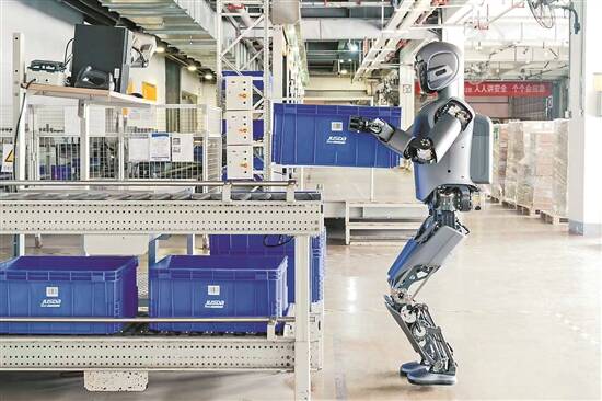 2025年,我国持续推进“人工智能+”行动。图为优必选工业人形机器人Walker S1在深圳富士康工厂实训(资料图) |