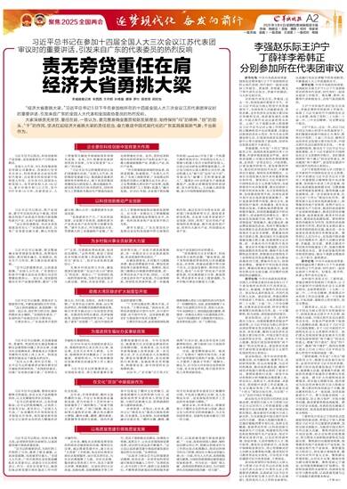 羊城晚报记者 丰西西 王丹阳 孙绮曼 谭铮 罗仕 郭思琦 周欣怡 “经济大省要挑大梁。”习近平总书记5日下午在参加他所在的十四届全国人大三次会议江苏代表团审议时的重要讲话,引发来自广东的