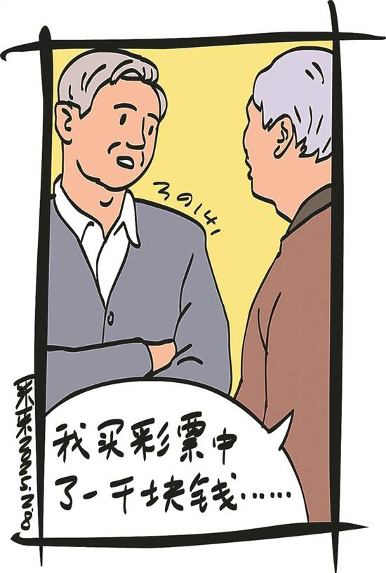 插图:采采 老王性格倔强,不论啥事,他都爱认死理,所以同事给他起了个雅号“一根筋”。 三年前,老王从单位退了休。退休后闲了,老王觉得待在家里日子过得没有味儿,于是,他就去公园和大家聊天。聊了几日,老王听一老头说他买彩票中了1000元。说者无意,听者有心,老头的话触动了老王,让他也动了买彩票试试的心思。 那天从公园出来,老王回家路上看到一家彩票店,就进去琢磨着选了一组号码,花两元买了一张彩票。 第二天开奖,老王满怀信心地打开手机对奖。让他失落的是,不但没中奖,而且连一个号都没中。他心里琢磨:“为啥一个号都没中呢?估计是自己选号太仓促,所以没选对号。” 为了提高中奖率,老王打开电脑参照以前的开奖结果和走势图,反复研究、认真琢磨,最后组合了一组满意的号码,便拿着这组号去彩票店买了一张彩票。 第二天开奖,这组号竟中了10元的小奖,这让老王信心十足。他认定选的这组号码迟早会中大奖,于是开始坚守这组号码。 (汪小弟)