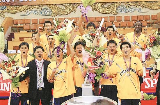 广东宏远队夺得2004-2005赛季CBA总冠军。宋希(后排右二) 图/视觉中国 |