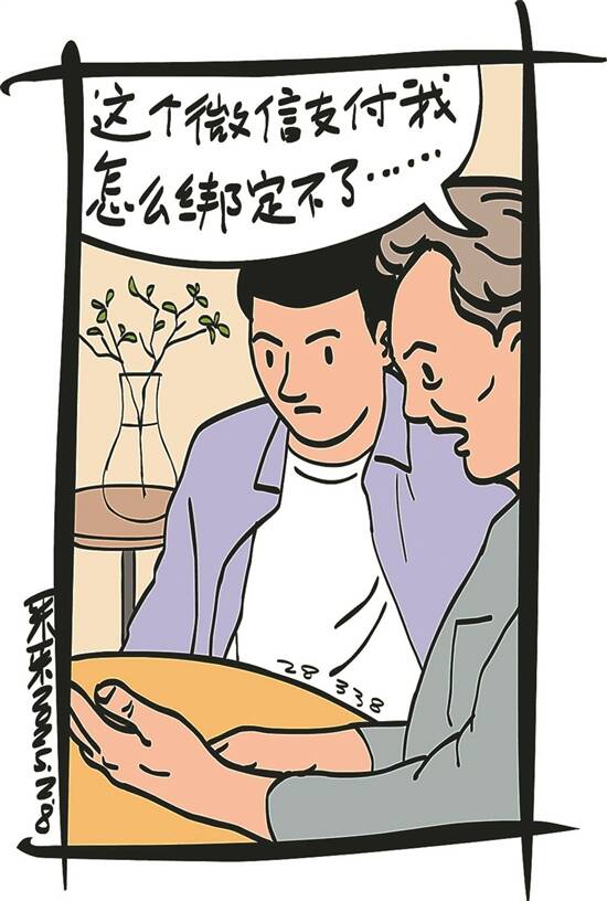 插图:采采 晚上,伟强从公司加完班回家,身心疲惫。刚坐上餐桌吃起晚饭,父亲就捧着手机坐在他身边,小心翼翼地请教:“这个微信支付我怎么绑定不了银行卡?你能教教我吗?” 伟强显得有点不耐烦。父亲前几天从乡下进城来小住一段时间,伟强心里很开心,但有时候也觉得父亲有点烦,似乎年纪大了,很多事情都不懂,比如不知道如何操作智能手机,连伟强帮他设定的指纹开锁也不知道如何用。伟强三番五次示范如何使用,老人家还是记不住。 “你用手机支付干什么?老人家不要搞那么多,用现金一样能买东西,不然瞎操作到时给人家骗了。”伟强劝道。 父亲如实回答:“彩票店老板说,现在很多人都用手机支付,有时候我给现金,老板都不一定有那么多零钱,所以我想着学会手机支付,买彩票也方便点。” 伟强一听更加生气,他听说父亲进城后闲着没事就跟人学着买起了彩票,虽然每次买的钱不多,可伟强总担心父亲会沉迷进去,只能提醒父亲购彩得理性、注意分寸。 (黄超鹏)