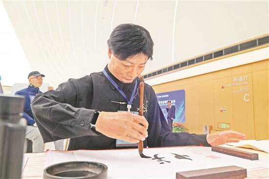 这一幕非常罕见:远看是人,近看是机器人。数字孪生书法机器人“俞文峰”提笔蘸墨,吸引了众多观众驻足 |