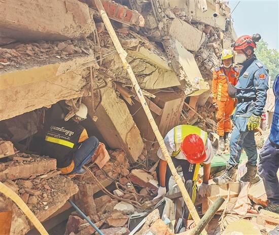 据新华社电 缅甸28日发生7.9级地震后,紧急驰援缅甸的中方多支救援队正在争分夺秒,抢救生命。当地时间30日晨,中国云南救援医疗队携手当地救援力量,救出一名幸存者。同日,中国蓝天救援队先遣组抵达曼德勒并立即与当地志愿者展开救援前期工作。 当地时间29日上午7时许,中国云南救援医疗队一行37人携带全功能生命探测仪、地震预警系统、便携式卫星、无人机等应急救援物资,抵达缅甸仰光国际机场。他们即刻与缅甸消防救援队会合,前往受灾严重的内比都。当天傍晚,救援队伍抵达内比都市区后立刻展开救援工作。30日5时,他们从欧达拉蒂利医院废墟下救出1名被困近40小时的老人。 30日上午,缅甸领导人敏昂莱在欧达拉蒂利医院慰问中国云南救援医疗队全体成员,对救援医疗队震后第一时间到缅救援表示感谢。 在另一受灾严重的缅甸城市曼德勒,30日凌晨,首批抵达曼德勒市的中国蓝天救援队先遣队员立即在当地开展工作。6时30分,上百名缅甸华侨华人青年志愿者响应号召赶来,在救援队员的专业指导下展开信息搜集、震区情况勘探等前期技术、信息和后勤保障工作。缅方救援部门官员也赶来,向先期抵达的救援队先遣队员介绍缅方对国际救援工作的分工安排。 当地华人居民小杨一家30日凌晨告诉记者,人们通过华人自助微信群联系,告知大家救援人员急需消毒水、手套、N95口罩等物资。许多在仰光的华人得知后连夜开车十几个小时送到曼德勒,不少餐厅也把餐食免费辗转送给救援人员。 一方有难,八方支援。29日,云南省粮食和物资储备局第一时间启动应急响应机制,迅速筹备帐篷、毛毯、折叠床等救灾物资,全力支持缅甸地震救灾工作。据悉,第一批救灾物资已于29日晨从云南昆明空运发往缅甸地震灾区。 缅甸国家管理委员会当地时间30日下午2时许通报,缅甸强震造成全国死亡人数升至约1700人,另有约3400人受伤、约300人失踪。 据新华社电 据中国驻缅甸大使馆消息,中国湖南岳麓蓝天救援队30日在缅甸曼德勒成功救出一名幸存者。 当天9时30分许,岳麓蓝天救援队在曼德勒佛学礼堂所在地通过生命探测仪发现一名仍有生命体征的幸存者,之后与当地消防队合作商讨救援方案,开展破拆营救,成功将这名幸存者救出。