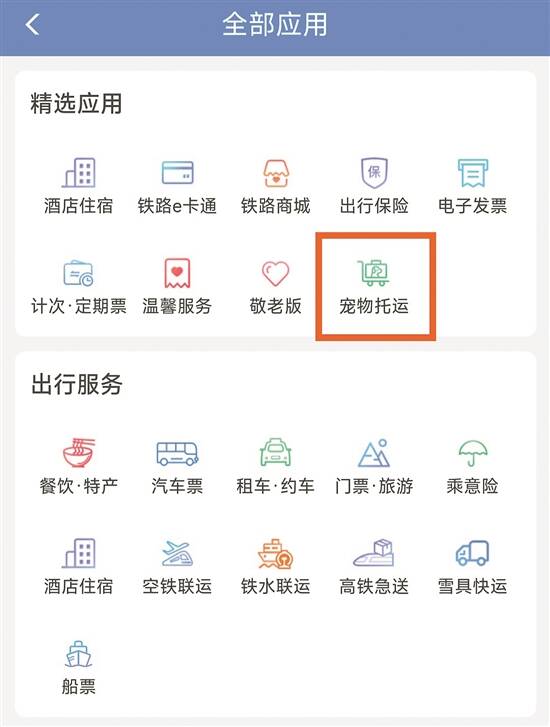 铁路12306 APP上已经能找到相关“宠物托运”功能 |