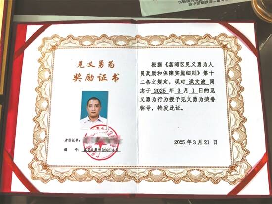 3月21日,洪文波被广州市荔湾区见义勇为评定委员会授予见义勇为荣誉称号 |