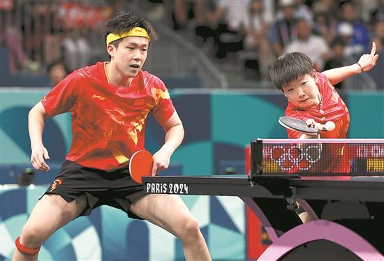 王楚钦/孙颖莎(右)在巴黎奥运会乒乓球混双决赛中 新华社发 |