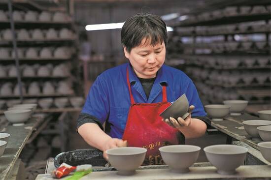 山东海瓷文化股份有限公司,工人正在制作海瓷产品 |