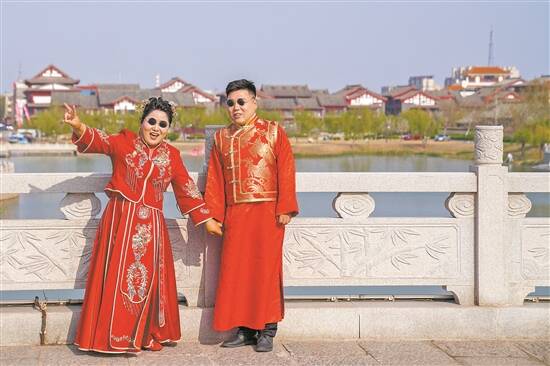 游客在阳信县万亩梨园中拍照打卡,流连忘返 |