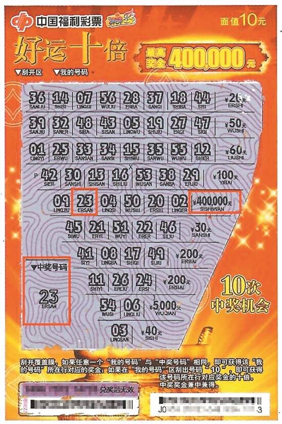 文/羊城晚报记者 黄颖琳 通讯员 梁一鸣 插图 采采 图/江门福彩 记者从江门市福彩中心获悉,3月25日下午,江门一彩民在开平市水口镇大新路大宁楼8号44122443福彩销售站点刮出一等奖40万元。近日,幸运儿赵先生来到江门市福利彩票发行中心办理兑奖手续。 据赵先生介绍,他购买福利彩票多年,最喜欢刮刮乐,因其即买即开、即中即兑的特点,可以为他提供放松的情绪价值。中奖那天下午,赵先生前往44122443福彩销售站点购彩,当天是双色球的开奖日,他买了当期的双色球彩票,还买了“喜相逢”刮刮乐现场开刮,中了不少小奖。赵先生便以中奖奖金兑换了“好运十倍”刮刮乐继续开刮。当刮开其中一张“好运十倍”时,“中奖号码”是“23”,刮开“我的号码”区域出现了“23”,再刮开对应的中奖奖金竟然是“¥400000元”。“太惊喜了!”那一刻,赵先生心情很激动,第一时间和家人分享了这个特大喜讯。 此外,中出大奖的44122443销售站点近期同步开展庆贺活动,锣鼓喧天,醒狮跃舞,吸引了不少市民现场驻足围观“沾沾喜气”。销售员在向市民分享中奖喜讯的同时,也向市民积极宣传福彩的公益属性。 坚守公益初心,汇聚爱心力量。中国福利彩票为社会福利和公益事业而生,由国家特许发行,以筹集公益金为目的。一张张福利彩票,肩负公益使命,汇集购彩者的爱心,始终秉承“扶老、助残、救孤、济困”的发行宗旨,持续为社会福利和公益事业的建设和发展贡献力量。