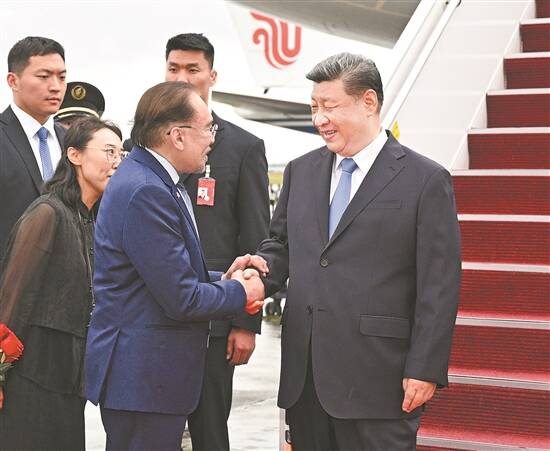 当地时间4月15日晚,国家主席习近平乘专机抵达吉隆坡,应马来西亚最高元首易卜拉欣邀请,对马来西亚进行国事访问。专机抵达吉隆坡国际机场时,马来西亚总理安瓦尔,外交部部长穆罕默德,陪同部长、交通部部长陆兆福等高级官员热情迎接 新华社发 |