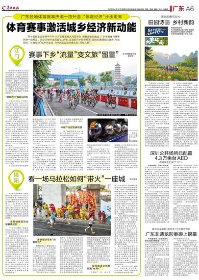 第十五届全运会将于今年11月在粤港澳大湾区举办,随着盛会的临近,广东各地体育赛事热潮一路升温。无论在城市还是县城、乡镇,运动的汗水肆意挥洒、竞技的激情处处激荡,与此同时,“体育经济”也步步走高,与