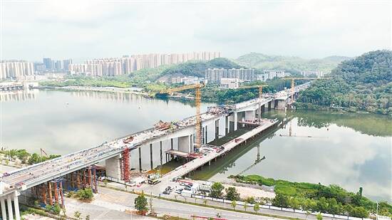 羊城晚报讯 记者王丹阳、通讯员粤交集宣摄影报道:4月21日凌晨,随着最后一车混凝土缓缓注入合龙段,广东省“交通强国”战略试点工程、长深高速河惠段改扩建项目东江特大桥顺利合龙(见图)。大桥宛如一条巨龙横跨东江两岸,粤港澳大湾区交通网络通行能力再提升。 东江特大桥是长深高速河惠段改扩建项目的控制性工程,大桥毗邻高速,需采取“边通车、边施工”的模式,同时承台或深埋水下20米,或处于陡坡硬岩中,施工难度大。建设者采用创新工法攻克水下施工难题并在悬浇梁施工中引入新技术,将单节段梁板施工周期从15天缩短至12天。 长深高速河惠段改扩建项目全长约116.6公里,起于河源市东源县,终于惠州市惠阳区,采用双向八车道高速公路标准改扩建。目前东江特大桥主桥部分已实现合龙、引桥部分已完成钢箱梁吊装。项目建成后,将成为串联粤港澳大湾区与江西等中部省份的“黄金通道”,推动深莞惠都市圈与河源等地的深度融合,为区域经济注入新动能。
