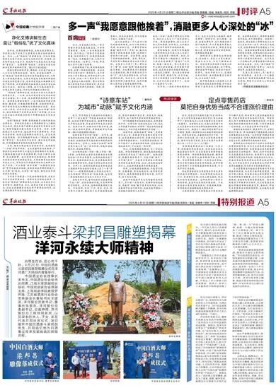 酒业泰斗梁邦昌雕塑揭幕 洋河永续大师精神