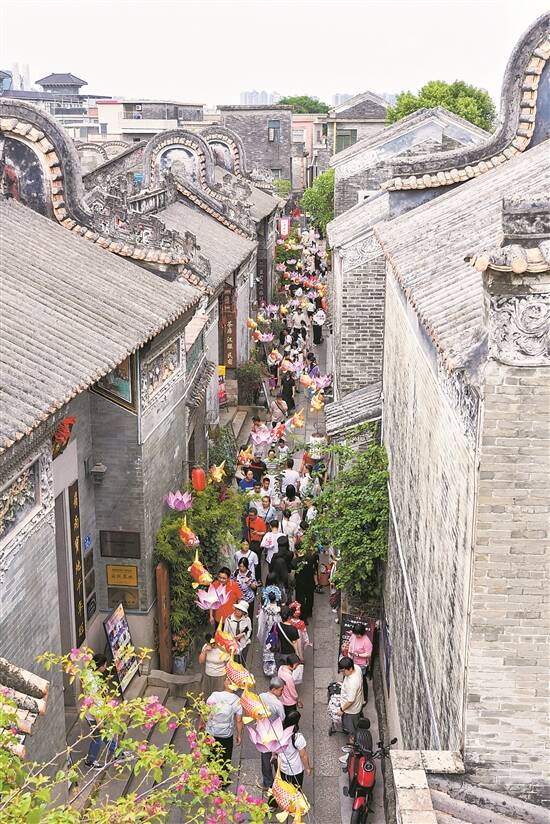 羊城晚报讯 记者刘星彤、实习生胡思婷、通讯员胡杏梅摄影报道:5月1日,广州沙湾古镇第二季度主题活动“沙湾古镇有席——2025畅游有席古镇·寻味传统沙湾”如约而来,本次系列活动将延续至6月15日,涵盖“沙湾古镇寻味马拉松2.0”打卡活动、五一“有席”嘉年华美食工艺游玩区、非遗广东醒狮表演等。沙湾学堂内还新设飘色主题非遗课程,大小游客可亲手体验制作一件沙湾飘色云肩。