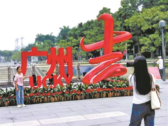 市民游客在花城广场拍照留念 羊城晚报记者 马灿 摄 |