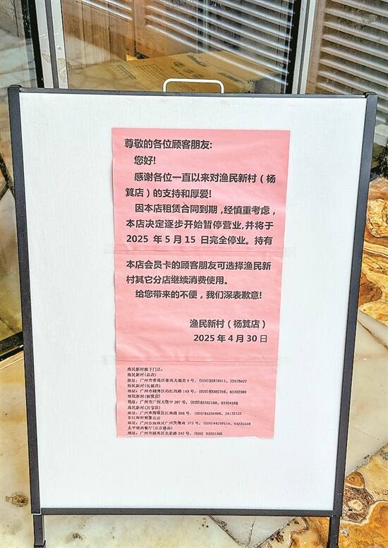 羊城晚报讯 记者梁怿韬摄影报道:渔民新村及其集团旗下餐厅,在广州又将数量“-1”。“五一”假期前,位于越秀区广州大道中富力东山新天地的渔民新村(杨箕店),贴出公告称将在5月15日完全停业。记者5月7日现场看到,餐厅仍正常营业,还有不少顾客光顾。对于这一昔日广州的“餐饮明星”近年来频频“关店”,顾客在线上线下皆有看法。 顾客赶着用掉会员卡余额 记者5月7日中午在渔民新村(杨箕店)看到,餐厅在一楼入口设置了告示,提醒顾客因租赁合同到期,该店将逐步暂停营业,并将在5月15日完全停业;该告示同时提醒使用充值会员卡的顾客仍可持会员卡到渔民新村旗下其他分店消费。 记者搭乘电梯来到位于4楼的餐厅大堂,看见午饭时间餐厅经营大致正常,大堂餐桌基本被顾客坐满,供应海鲜、烧腊的明档货源及食品充足,暂未见因停业在即而出现的食品菜式“缺货”现象。 “发停业公告前,人没有这么多;发了公告后,顾客来得比以往多了。”有店员向记者透露了餐厅发出停业公告前后的变化。记者现场看到,不少到场的顾客,持有渔民新村集团发放的充值预付费式会员卡,“我的卡里面还有6000多元没有用完,这家店(杨箕店)在老城区交通方便,如果停业了,我要跑很远才能继续消费了。”食客陈小姐告诉记者,她听说杨箕店要停业后,趁该店仍在经营,赶紧过来用掉会员卡内的充值余额。 高峰时餐厅数量曾超20家 渔民新村集团,曾是广州的“餐饮明星”。开放式的明档厨房让顾客一边点餐一边看着厨师制作菜式,设置海鲜池让顾客亲眼看到生猛海鲜从池中捞出现场烹制,均是该集团旗下餐厅招揽客人的“大招”;个别餐厅更提供从早茶、午餐到晚餐直落宵夜的“全天候餐饮”,让外地游客无论何时到达广州,均能吃到现做餐食,带旺广州“夜经济”。 梳理微信公众号“渔民新村集团”的发帖记录,记者发现在2017年时,集团旗下曾有餐厅27家,不仅广州有24家,佛山、上海、南京还各有1家餐厅。但近年来该集团业务不断收缩,多间餐厅“闭店”。截至2025年4月底,集团旗下餐厅仅剩8家,其中广州7家、上海1家。如果算上5月15日公告即将停业的渔民新村(杨箕店),则其营业的餐厅将只剩7家,其中广州6家、上海1家。 食客称出品下降经营“杀熟” 为何昔日“明星”如今“关店”频频?记者发现,除了公告给出的“租赁合同到期”理由外,出品水平下降、经营方式让顾客感到权益受损等,均导致渔民新村“星味下降”。以杨箕店为例,该店截至5月7日中午在“大众点评”上的差评条数达555条,“出品不好”是网友吐槽较多的“槽点”。网友“dd88zif”称,一顿饭出现“牛肉没熟、鲍鱼捞饭潦草”等问题,“只有盐焗螺和椰子鸡达到了大排档的水准”;网友“灯泡”称,“咸猪手和烤乳鸽骚味特别重”。 除了出品下降,餐厅的“杀熟”经营方式,也让老顾客不满。5月7日当天,记者看到顾客陈小姐拿着已经使用多年,卡面字迹已经模糊的渔民新村充值会员卡点菜。但来到明档前一看价格,却皱起了眉头,“我是支持了你们多年的会员,为什么我的价格要比非会员还高?”据悉,一般店家均会对预付费充值消费的顾客给予优惠,以鼓励他们多充值。但在渔民新村(杨箕店),几乎所有菜式的会员价格,均比非会员价格要高,如“椰青炖鸡翅”非会员88元/位,会员反而要168元/位;一碟集中了多款烧腊的拼盘“皆大欢喜”非会员278元/例,会员价高达538元/例;相对便宜一些的红烧乳鸽,非会员48元/例,会员92元/例。 “之前的充值政策,让我们现在这样定价。”一名店员向陈小姐表示,过去为了吸引顾客充值为会员,集团采取了“充100送100”等优惠政策,不少顾客因此大额充值,卡内的余额很多都是“送”的而不是顾客实际充的。为了平衡成本,餐厅采取了会员价格高于非会员价格的定价策略。